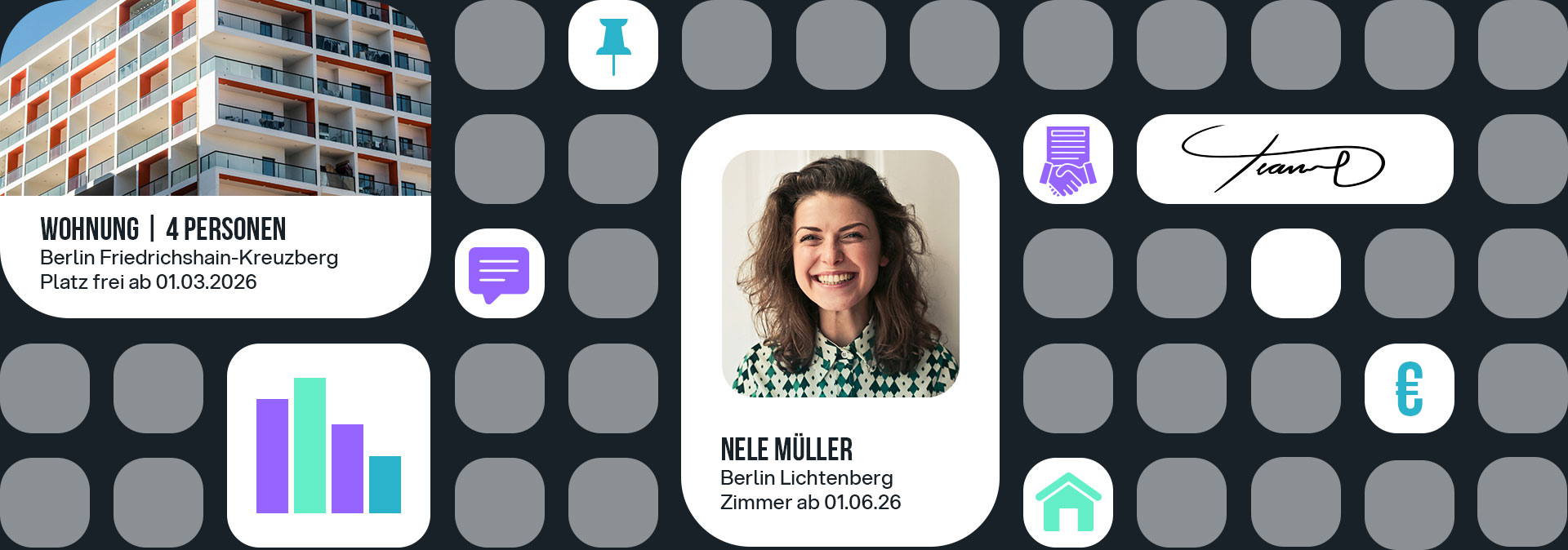 Digitale Prozesse, intelligentes Matching und effiziente Verwaltung in einer modernen Plattform – entwickelt, um Studierendenwerken Zeit zu sparen und das Zusammenleben zu verbessern.